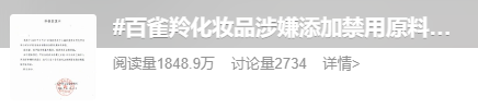 #百雀羚化妆品涉嫌添加禁用原料基本属实#话题
