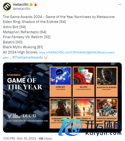 此前咱们曾报说念过,在今年度TGA游戏奖中《:悟空》被提名年度游戏大奖!而《黑听说》是年度游戏名单中M站评分最低的游戏,仅为81分,其他游戏齐在90分以上。近日外媒TheGamer发文称“《黑听说》评分太低不配年度提名”开云体育(中国)官方网站,激励网友们热议。 ![]() 文中暗示,许多东说念主对《寂寥岭2 重制版》、《地狱行者2》和《如龙8》等东说念主气游戏未能入选感到不悦。淌若要从现存名单中删除一款游戏的话,除了《黄金树幽影》这个DLC之外,《黑听说》亦然不值得入选的游戏之一。因为它施行上是有史以来取得年度最好游戏提名的游戏中评分最低的作品。 ![]() 此外著作中还提到,TheGamer以为《黑听说》省略上榜的原因只是是因为它冲破了Steam的销售记载:“销量并不是预计游戏质地的模范,否则《生化危境5》即是系列中最出色的作品,但咱们齐知说念事实并非如斯。” 不少推特网友齐怒喷TheGamer的不雅点,甚而有东说念主暗示:“他们接下来是不是要写一篇著作来阐发一下为什么《星鸣特攻》值得取得提名了?” ![]() ![]()