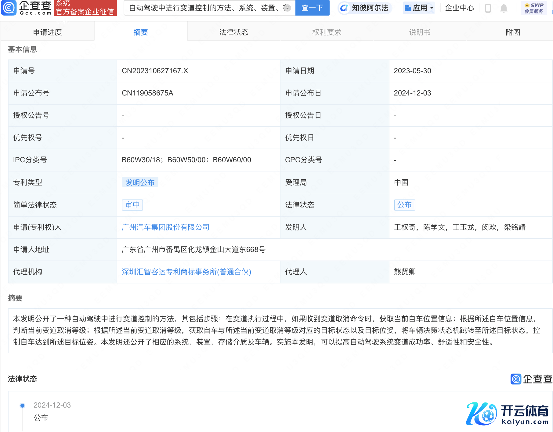 企查查APP显现,近日,广汽集团(601238)恳求的“自动驾驶中进行变谈适度的关节、系统、装配、存储介质及车辆”专利公布。企查查专利摘录显现开云官网切尔西赞助商,该发明在变谈本质流程中,要是收到变谈取消号令时,得到刻下自车位置信息;把柄所述自车位置信息,判断刻下变谈取消等第;把柄所述刻下变谈取消等第,得到自车与所述刻下变谈取消等第对应的观念景色以及观念位姿,将车辆有运筹帷幄景色机跳转至所述观念景色,适度自车达到所述观念位姿。本发明还公开了相应的系统、装配、存储介质及车辆。实施本发明,不错提升自动驾驶系统变谈顺利率、舒心肠和安全性。