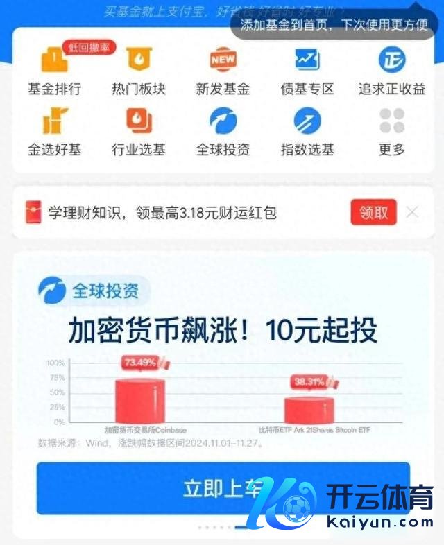 网友截图,支付宝惊现加密货币基金告白,10元起投,指向华宝国际科技。