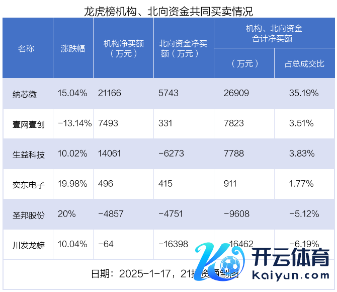 值得耀眼的是,机构和北向资金共同净买入了纳芯微、奕东电子、壹网壹创等3股;共同净卖出了圣邦股份、川发龙蟒等2股;在生益科技上出现不合,机构净买入生益科技1.41亿元,北向资金净卖出6273.22万元。