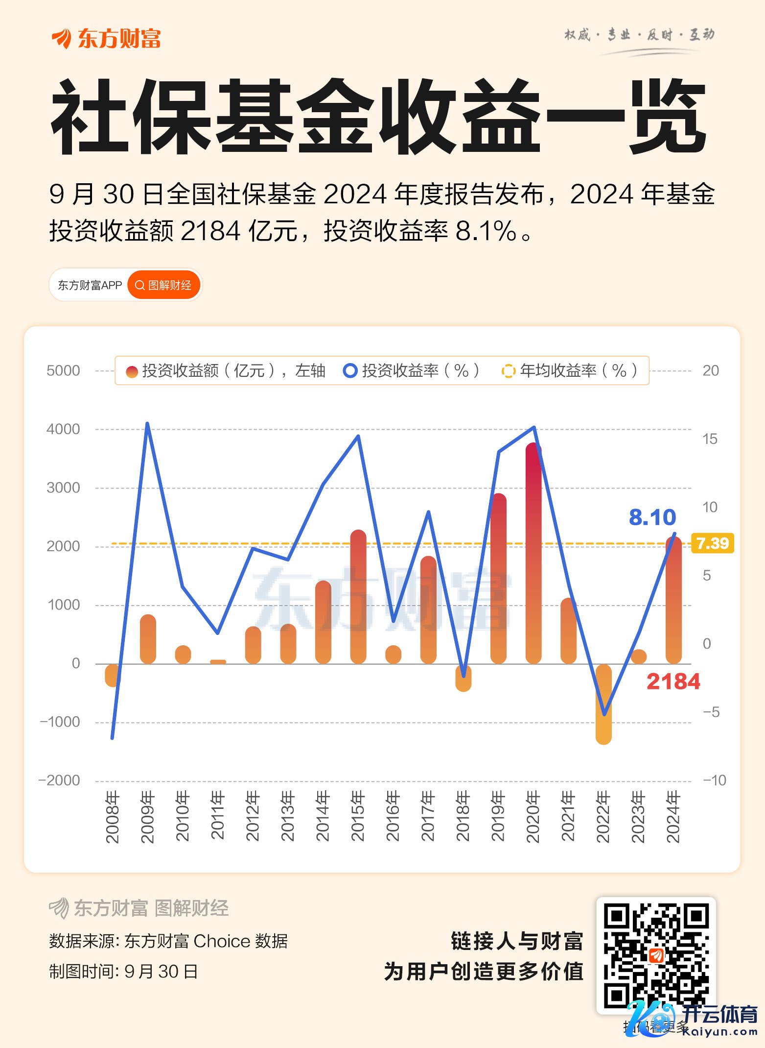 ![]() 9月30日开云体育(中国)官方网站,天下社会保险基金理事会发布了《天下社会保险基金2024年度讲明》(下称《讲明》)。 《讲明》显现,罢了2024年末,基金资产总数达3.32万亿元。2024年天下社保基金投资收益额为2184亿元,投资收益率达8.10%,自2000年配置以来累计投资收益额为1.9万亿元,年均收益率达7.39%。 东方金钱Choice数据显现,2008年至2024年17年间,社保基金投资收益为正的年份有14个,仅有3个年份投资收益为负。其中投资收益额最高的是2020年,达3787亿元,投资收益率最高的是2009年,达16.12%。 天下社会保险基金理事会沟通讲求东谈主先容,2024年,面临外部压力加大、本钱阛阓波动加重的严峻场面,天下社会保险基金理事会效能健全风险防控体系,得当合手好基金投资运营,塌实验诺基金安全和保值升值主体攀扯,基金赢得较好投资功绩。 此外,沟通讲求东谈主还示意,天下社会保险基金理事会援手并不时丰富“恒久投资、价值投资、攀扯投资”理念,审慎郑重开展投资运营科罚,至意践诺好基金安全和保值升值主体攀扯。